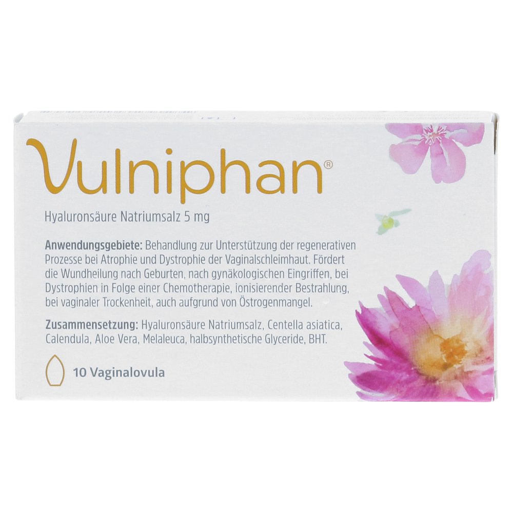 Vulniphan VaginaloVula может помочь быстро и эффективно и в то же время поддерживать регенерацию слизистой оболочки влагалища в атрофии и дистрофии. Поскольку он содержит комбинацию активных ингредиентов сочетания гиалуроновой кислоты и чистых растительных экстрактов, которые влагалища снова более гладкая и эластичная.