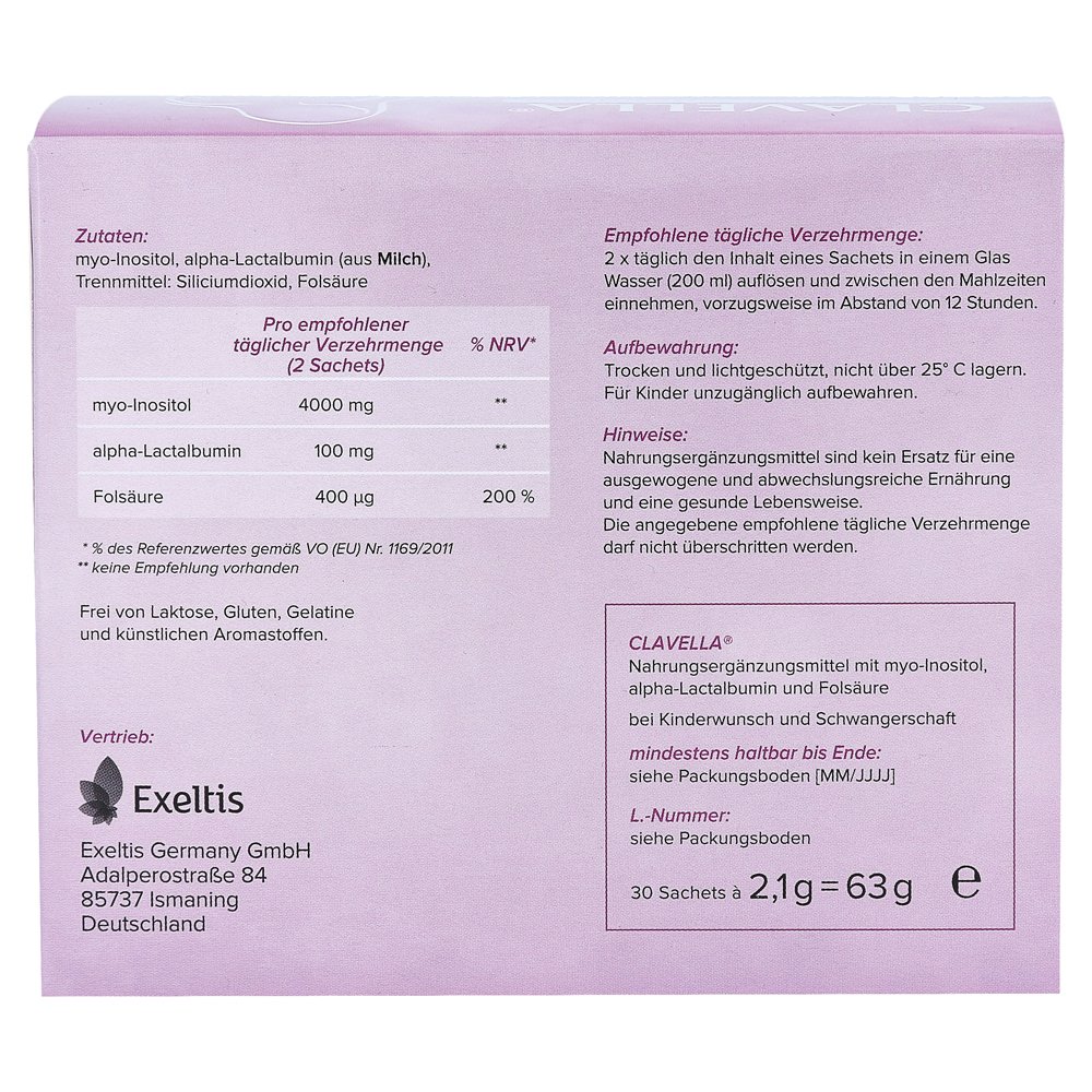 Клавелла Premium Sachets — это пищевая добавка, которая идеально подходит для женщин с детскими желаниями и беременными женщинами. ИНГРЕДИЕНТЫ МИО-ИНОСИТОЛ, Фолиевая кислота и альфа-лактальбумин оптимально совпадают и имеют много положительных свойств:
